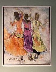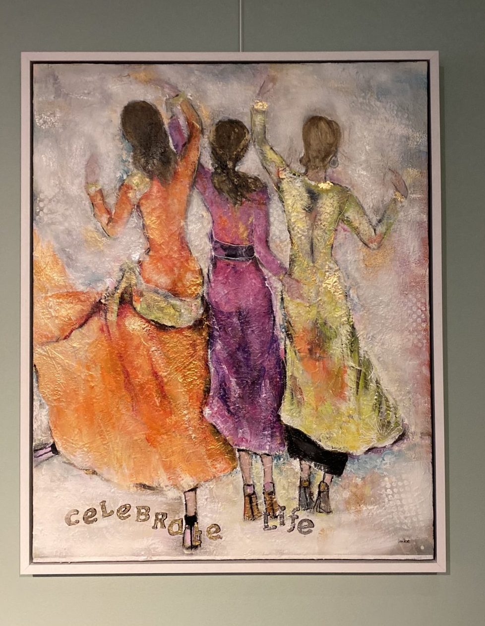 Celebrate Life : mixed media met witte baklijst.,ophangsysteem en afgewerkt met satin lak. Interesse in dit kunstwerk.