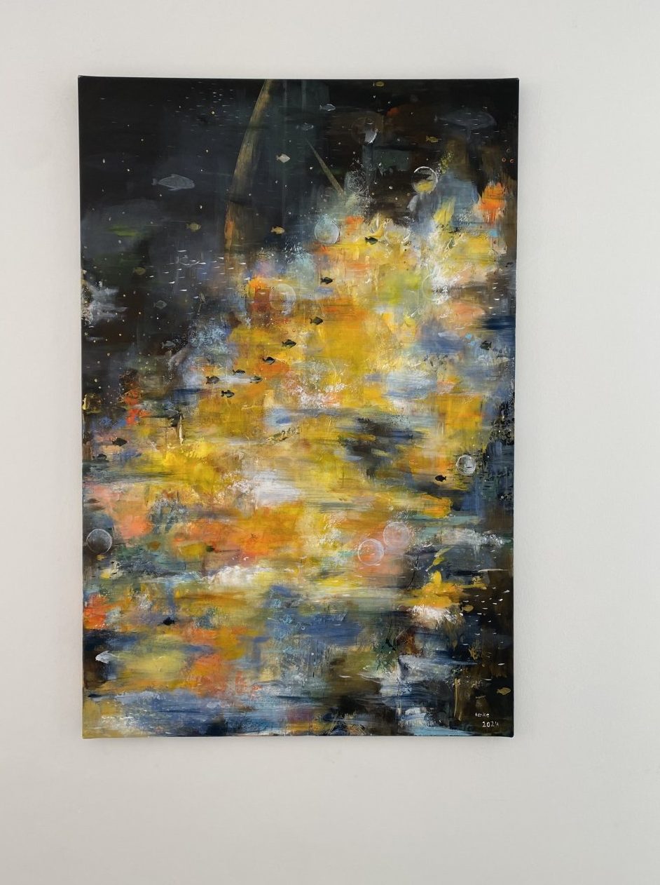 Ocean ,geïnspireerd door het snorkelen op Lanzarote. Acryl op canvasdoek