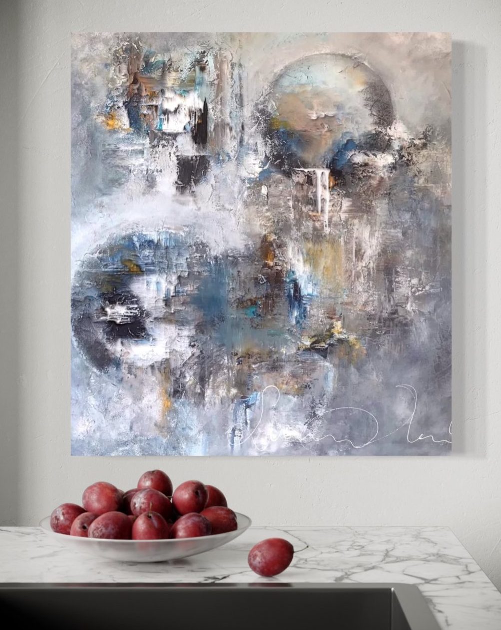 Een globale impressie van het schilderij "Tussen twee werelden" 80x80cm.