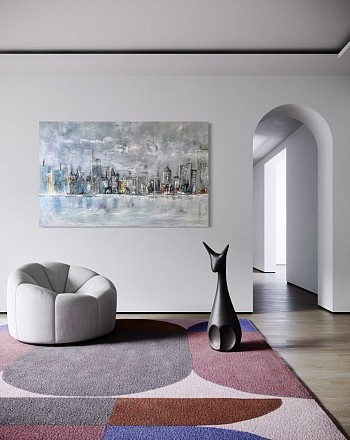 Een globale impressie van het schilderij "Skyline" 160x150cm.