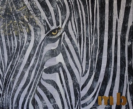 Vanwege zijn bijzondere uiterlijk triggert de zebra mij en inspireert mij tot een schilderij met een eigen toets. Aan het zwart/wit zijn 'gouden' details toegevoegd. De naam komt waarschijnlijk uit het Portugees cebrario of ezebrario, wild paard of wilde ezel (882).