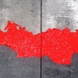 Een globale impressie van het schilderij "Susto" 90x90cm.