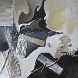 Een globale impressie van het schilderij "Zonder titel" 60x60cm.