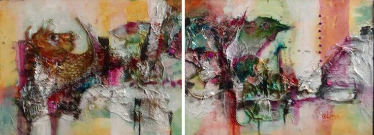 Een globale impressie van het schilderij "Flora en fauna" 100x50cm.