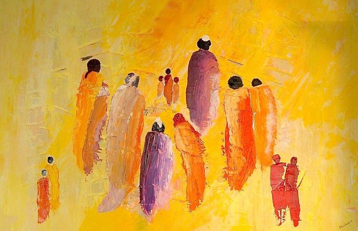 Een globale impressie van het schilderij "Allen op weg " 115x75cm.