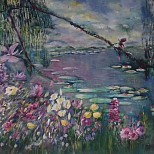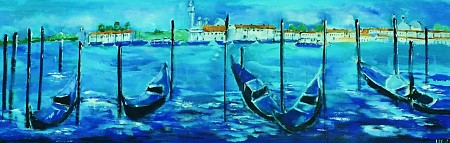 Een globale impressie van het schilderij "Venetie" 160x40cm.