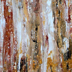 Ik heb een aantal workshops gevolgd, maar heb ontdekt dat ik het beste van mezelf kan geven als ik alleen in mijn atelier ben. Dan voel ik me vrij en helemaal samen met mijn doek, de verf en muziek en kan ik mezelf zonder voorbehoud aan het proces overgeven.