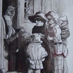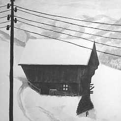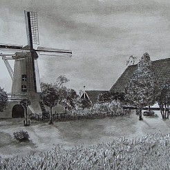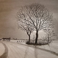 Pentekening, gewassen, Italiaans landschap, mooi ingelijst achter glas