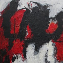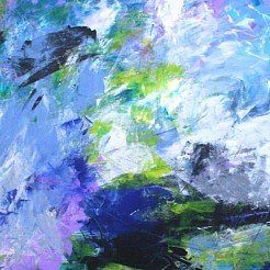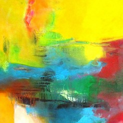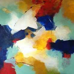 Het maken van een schilderij is steeds weer het begin van een van een nieuwe reis waarbij de kleur en de figuratie samen een compositie maken.