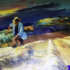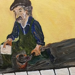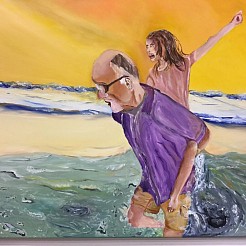 Maart 2017Opa met kleindochter aan zee geschilderd door