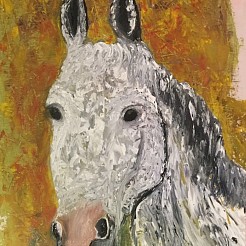 Juli 2017Paerd olieschilderij met paletmes geschilderd door