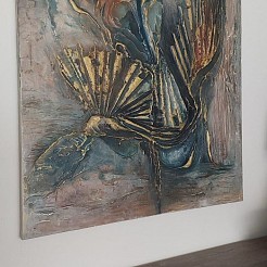 Hoe ik begonnen ben is wel apart. Er werd in 2020 heel onverwachts, ontdekt dat ik ernstig nierfalen had en nog maar 11% nierfunctie over had. Kreeg gelukkig een geschikte donornier van mijn oom. Na transplantatie kwam ik thuis te zitten aan het herstellen en een corona lockdown. Had niks meer te doen. Maar stil zitten kon ik niet. Ben toen begonnen met kunstschilderen met acrylverf. Mijn eerste schilderij na transplantatie gemaakt in 2020 in een herfst stijl erg groot. Daar had ik zulke geweldige en mooie reacties op dat ik er veel plezier in ging krijgen en veel meer wilde gaan maken. Heb ontdekt dat ik niet van één soort techniek houd, maar van veel verschillende en probeer dan ook van alles uit. Ik schilder heel graag vrouwen of abstractekunst, dieren en heb inspiratie van landschappen. Maar ook inspiratie van lijnen, vormen kleuren en materialen die ik zie. Wordt soms zo druk in mijn hoofd dat ik te veel ideeën heb. Wil alles uit proberen maar mijn passie gaat wel meer uit naar abstracte kunst. Heerlijk lekker uitleven op je kunstwerk en ontspannen.
