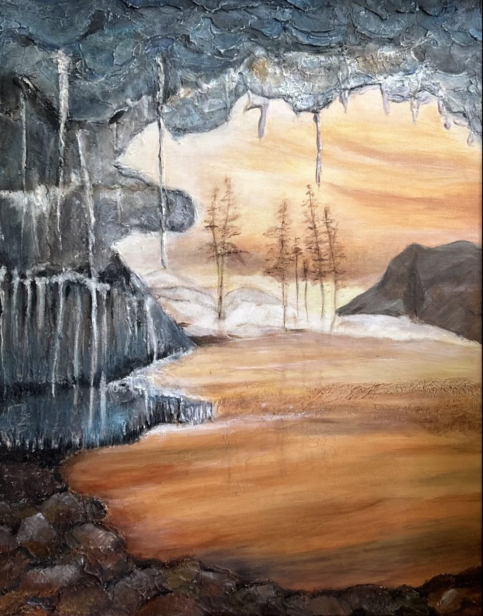 Een globale impressie van het schilderij "Canadese ijsgrot" 40x50cm.